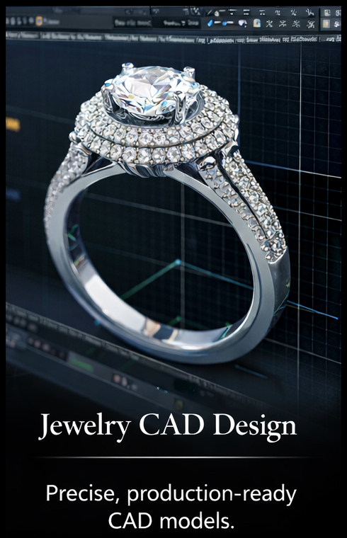 We specialize in transforming ideas into refined, production-ready jewelry through expert CAD design, bespoke development, and seamless production support.